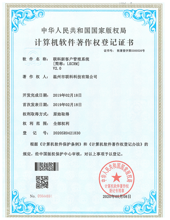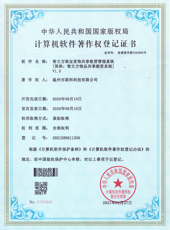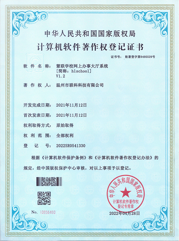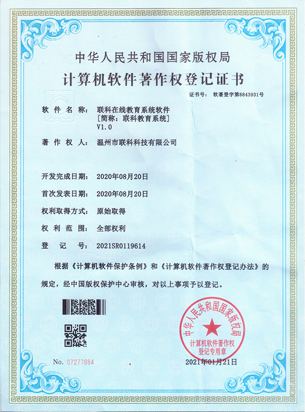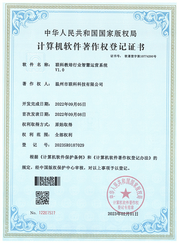 聯(lián)科教培行業(yè)智慧運(yùn)營系統(tǒng)V1.0登記證書(2022R11L2324133)