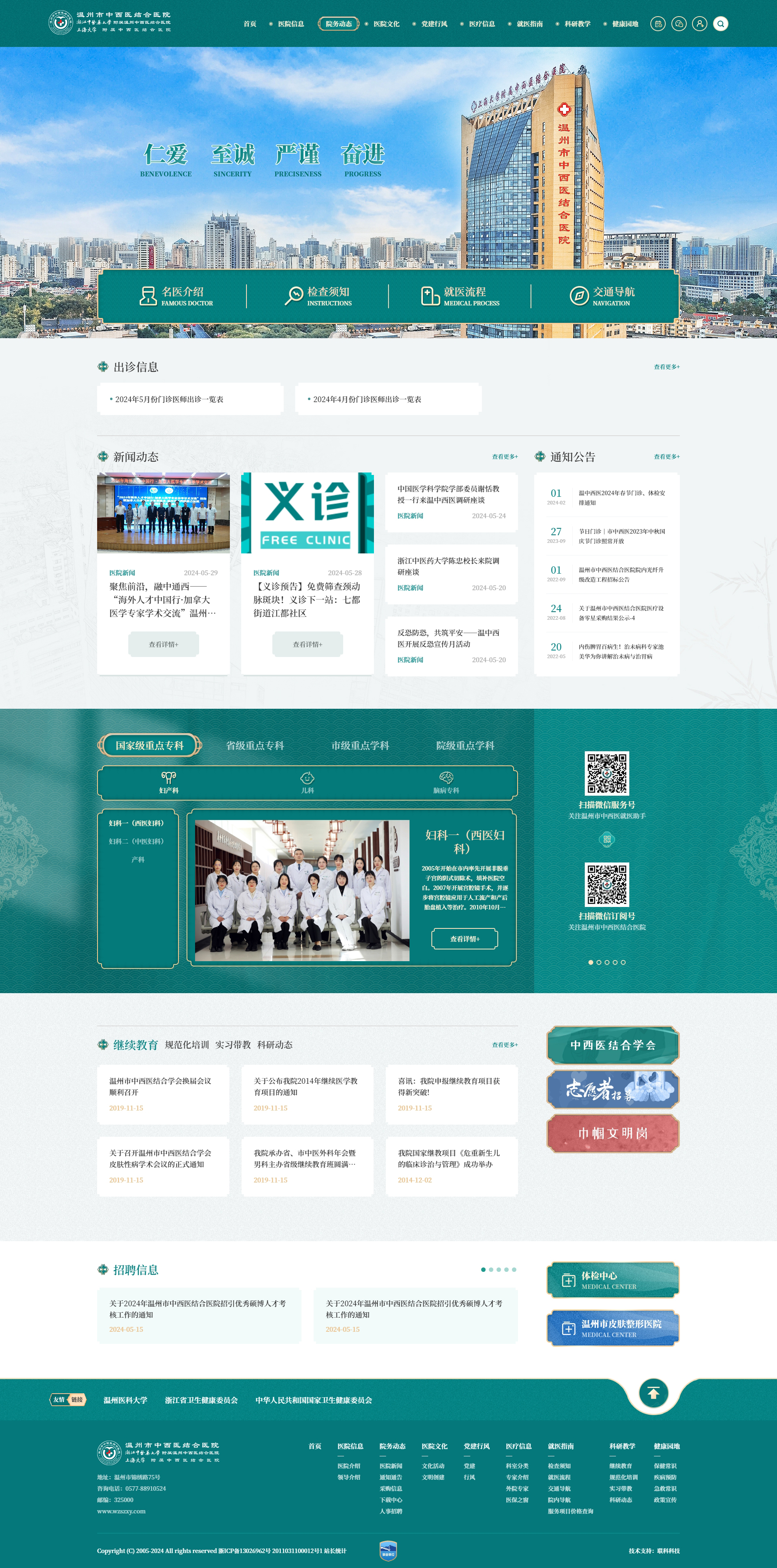 溫州市中西醫(yī)結(jié)合醫(yī)院(浙江中醫(yī)藥大學(xué)附屬溫州中西醫(yī)結(jié)合醫(yī)院、上海大學(xué)附屬中西醫(yī)結(jié)合醫(yī)院)成立于1958年,由溫州市區(qū)醫(yī)屆同仁攜手合作,組成溫州市中西醫(yī)結(jié)合醫(yī)院的前身溫州市聯(lián)合醫(yī)院,此后歷經(jīng)“溫州市康樂醫(yī)院”、“溫州市東風(fēng)醫(yī)院”,于1987年更名為“溫州市中西醫(yī)結(jié)合醫(yī)院”。建院以來,醫(yī)院一直秉承“名醫(yī)立院”的宗旨,深得廣大市民信賴,如今已發(fā)展為集醫(yī)療、科研、教學(xué)、預(yù)防、保健、康復(fù)于一體的唯一一所市屬公立國家三級甲等中西醫(yī)結(jié)合醫(yī)院。近年來,先后獲得聯(lián)合國教科文組織“愛嬰醫(yī)院”稱號,全國中醫(yī)藥系統(tǒng)創(chuàng)先爭優(yōu)活動先