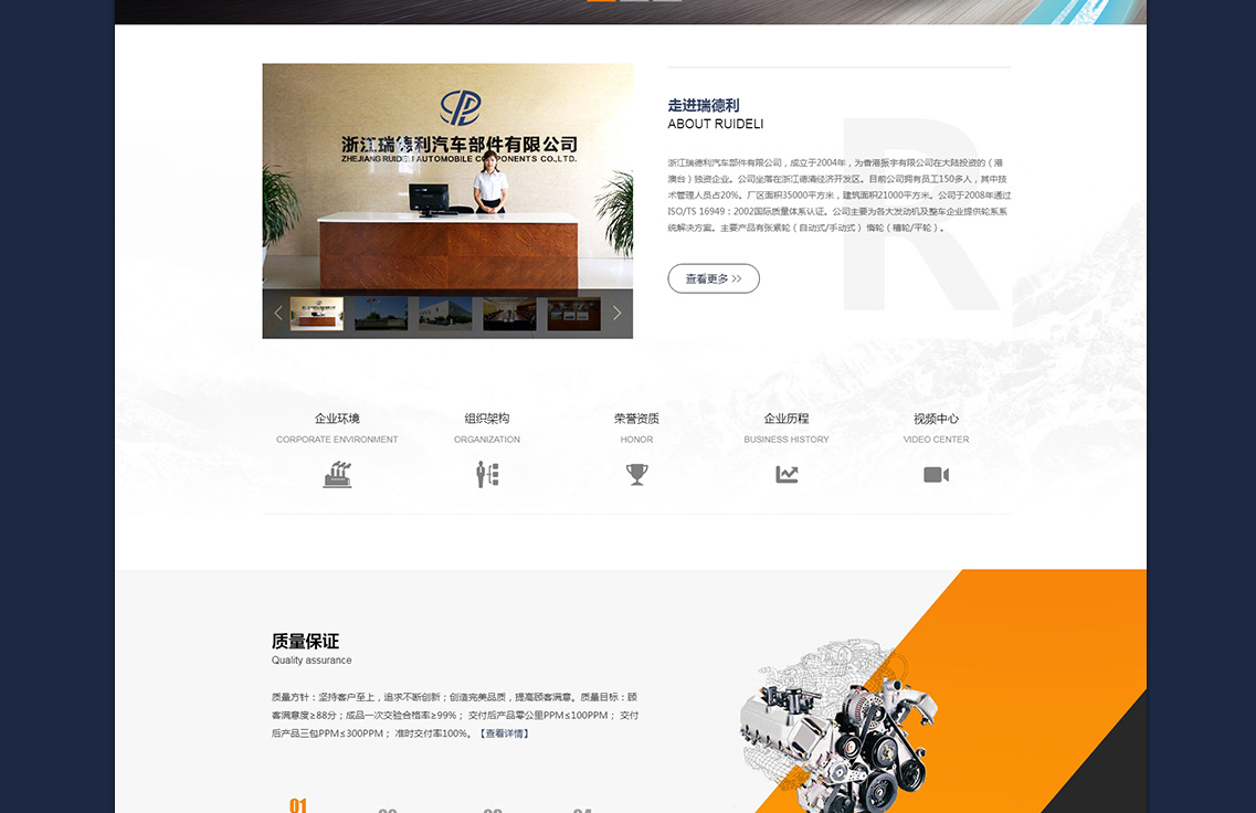 浙江瑞德利汽車部件有限公司,成立于2004年,為香港振宇有限公司在大陸投資的(港澳臺)獨資企業(yè)。公司坐落在浙江德清經(jīng)濟開發(fā)區(qū)。目前公司擁有員工150多人,其中技術管理人員占20%。廠區(qū)面積35000平方米,建筑面積21000平方米。公司于2008年通過ISO/TS 16949:2002國際質(zhì)量體系認證。公司主要為各大發(fā)動機及整車企業(yè)提供輪系系統(tǒng)解決方案。主要產(chǎn)品有張緊輪(自動式/手動式) 惰輪(槽輪/平輪)。