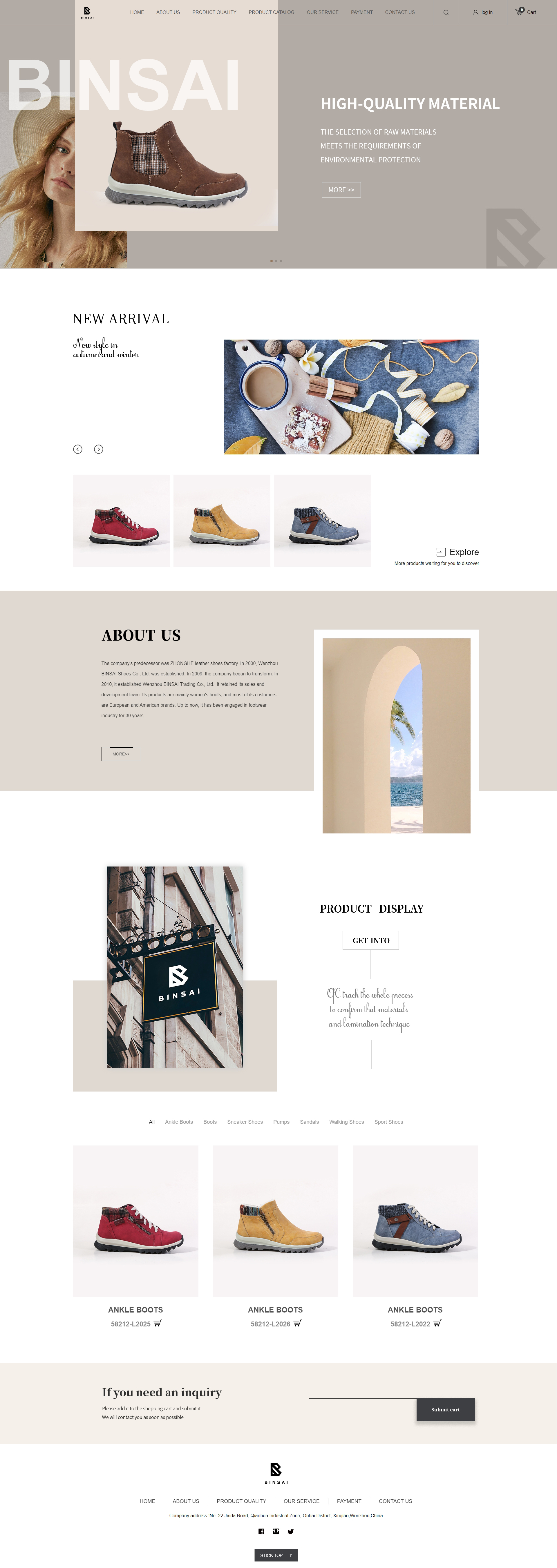 he company's predecessor was ZHONGHE leather shoes factory. In 2000, Wenzhou BINSAI Shoes Co., Ltd. was established. In 2009, the company began t