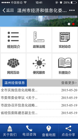 該公眾平臺主要分為三大版塊,分別是“智慧專題”“便民服務(wù)”和“微官網(wǎng)”。其中,便民服務(wù)可為市民提供一站式的綜合服務(wù),涉及與市民生活息息相關(guān)、社會關(guān)注度高的醫(yī)院掛號預(yù)約、交通出行、旅游資訊、社保查詢、市民卡查詢,出入境證件辦理查詢、房產(chǎn)證登記辦理查詢、土地證登記查詢、公積金查詢、中考錄取查詢、溫州市圖書館借閱查詢……目前,該平臺的“便民服務(wù)”一欄已匯集了33項(xiàng)便民信息化服務(wù)。