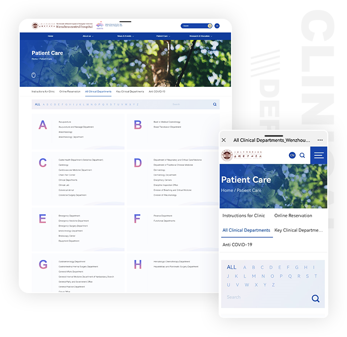 創(chuàng)新設(shè)計的臨場科室頁面,能讓用戶更方便地查看科室所屬和直接根據(jù)首字母查找,配以關(guān)鍵詞搜索,讓用戶更快速地找到所需的對應(yīng)科室。