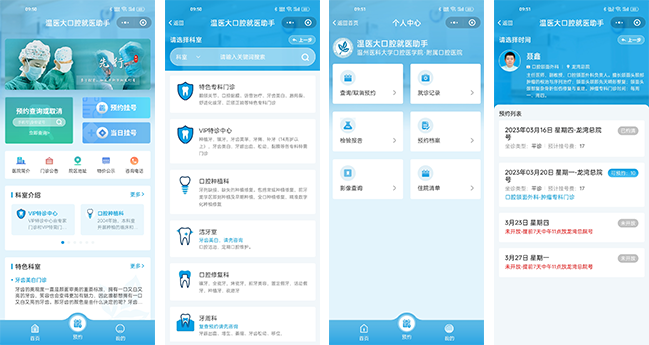 為溫醫(yī)大附屬口腔醫(yī)院開發(fā)的微信小程序應(yīng)用,根據(jù)需求進行整體UI設(shè)計,呈現(xiàn)更好地視覺效果,優(yōu)化患者預(yù)約、查詢等功能的用戶體驗。包括預(yù)約掛號、當(dāng)日掛號、科室介紹、物價公示、專家介紹、查詢就診記錄、體檢報告、醫(yī)療影像、住院清單等功能,助力醫(yī)院更好服務(wù)患者。